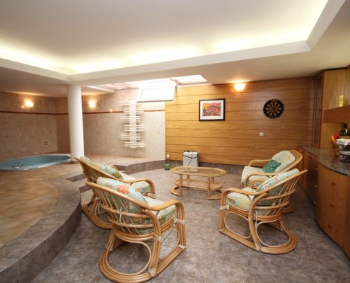 - 0 этаж: В подвальном помещении находится сауна, тренажёрный зал, джакузи, комната для отдыха, ванная комната, туалет. Так же, на этом этаже есть гараж и прачечная.