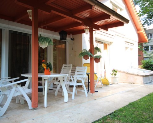 II. Épületbe egy átjárón keresztül is átjuthatunk az I. Épületből, de akár a külön bejárat is használható igény szerint. Itt található egy nappali+háló, egy étkező konyhával, és egy fürdő gardróbbal. Ehhez a házrészhez tartozó TÉLIKERTBEN kedvére kikapcsolódhat az év bármely szakában.