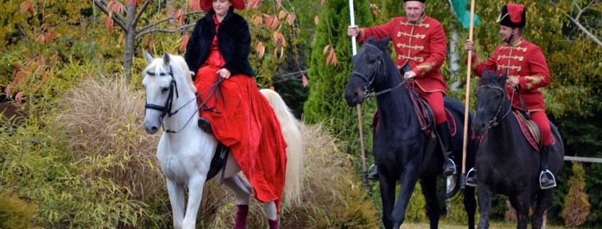 – Конное представление с участием «королевы Эржебет», в костюмах того времени, в дамской карете