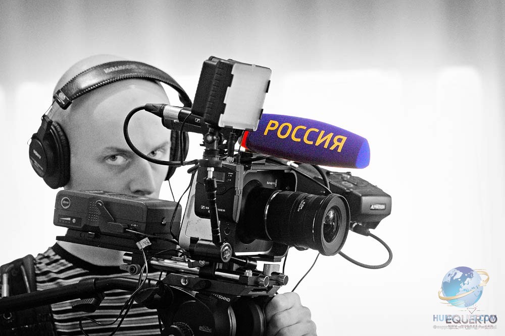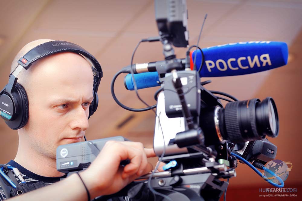 Оператор российского телеканала добросовестно записывает происходящее на прессконференции.