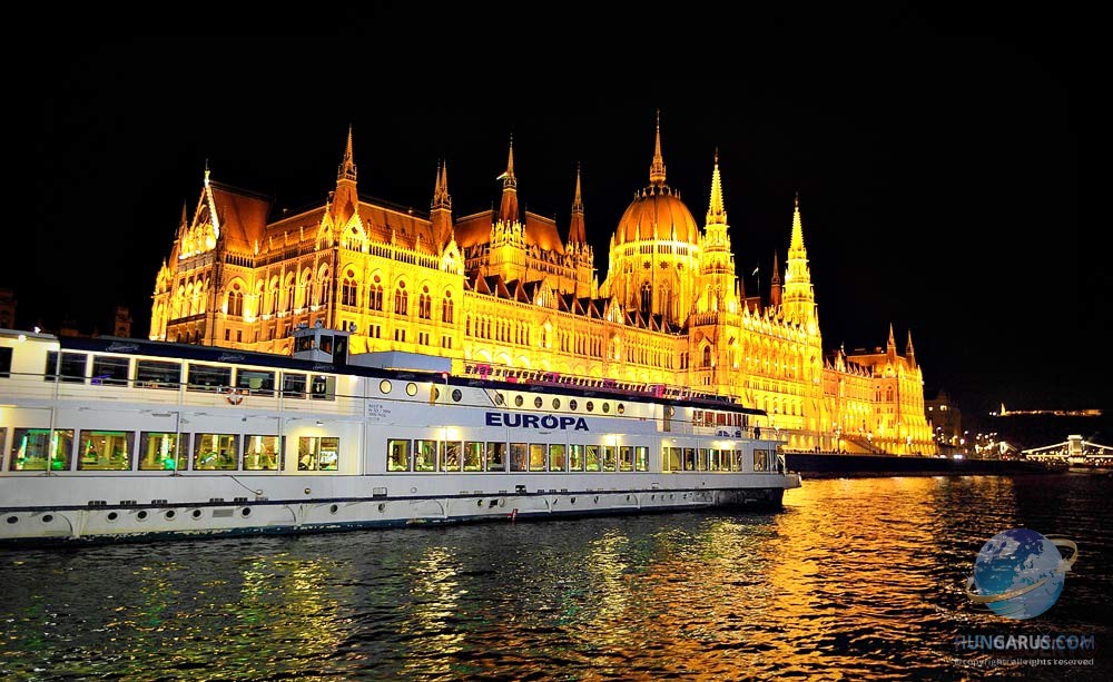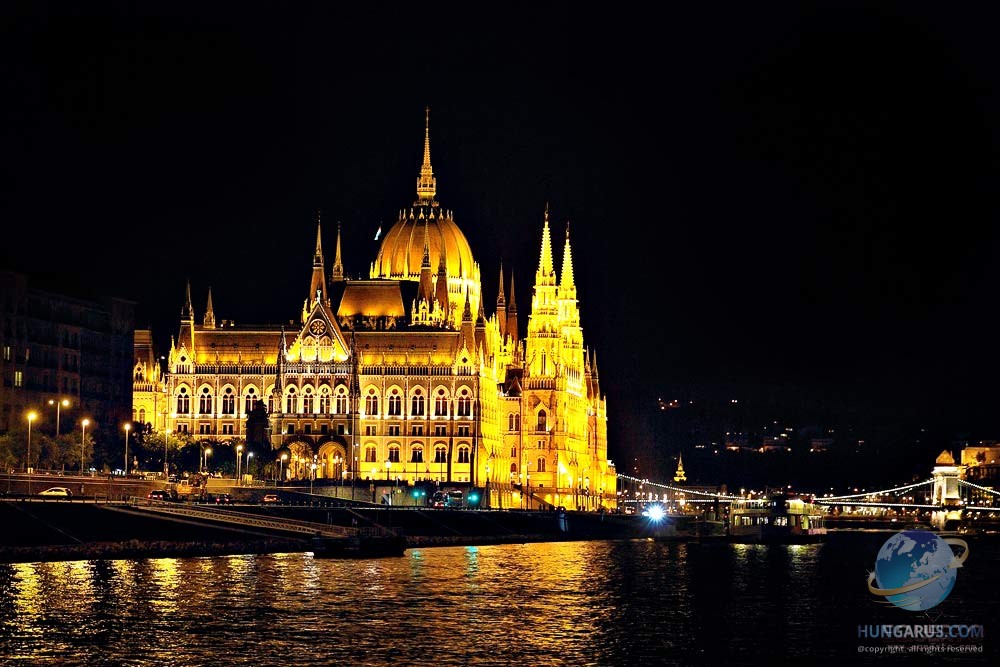 Как упоительны в Венгрии вечера. Вид на освещенное здание парламента страны.