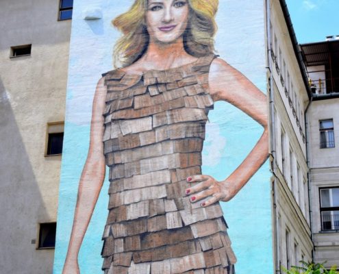 Рисунки, что сейчас появляются на улицах заслуживают уважения. И все не спроста, ведь рисует их команда молодых художников под названием NeoPaint Works. Творческая группа в Будапеште была создана еще 15 лет назад, главной целью которой есть популяризировать ручное искусство декоративной живописи. Первой их шедевр был создан на улице Dob utca – Csányi utca sarok
