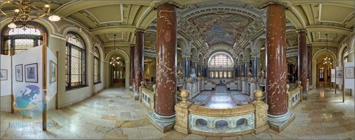 После кассы проходим в мощные двери, и… изумленно замираем: мы очутились в сказке! Огромное фойе со стеклянной крышей и витражами по бокам, с полуэтажами и симметрично сходящимися и расходящимися маршами из разноцветного мрамора дышит такой гармонией, что от чувства умиротворенности хочется остаться здесь навсегда. Не случайно именно в этом грандиозном зале проходила в 1992 году встреча королевы Елизаветы II с представителями венгерской духовной жизни. Также это преддверие Юстиции выбрал венгерский кинорежиссер Иштван Сабо для съемок кульминационного бала в фильме “Мефисто” (1981, премия “Оскар”). Гармонию архитектурную дополняет гармония народная на постоянной выставке “Традиционная культура венгерского народа”, построенной в 1991 году. Авторы выставки, отражающей период с конца 18 века до Первой мировой войны, естественным образом разделяют эту неистощимую тему на островки: быт, работа, праздники, приготовление пищи, ремёсла, одежда, рождение-свадьба-смерть и пр. Живописные наряды, привлекательные своей простотой предметы обихода, орудия труда, восстановленные интерьеры крестьянских изб, мультимедийное сопровождение тематики обеспечат незабываемый день, и заденут тихо поющую струну в душе – генетическую память предков. Наряду с постоянной выставкой музей предлагает и временные экспозиции. В июне не пропустите рисунки Йожефа Хуска, выдающегося исследователя орнаментики, связывавшего традиционные венгерские мотивы с восточными, индийскими.
