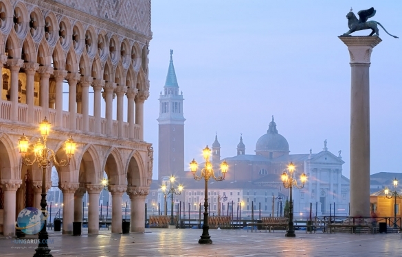 В 828 г. два венецианских купца выкрадывают в Александрии останки Св. Марка и в корзине, укрытой свиными тушами, привозят в Венецию. С этого момента начинается создание ансамбля площади Св. Марка, визитной карточки Венеции. Затем были почти пять столетий невероятного расцвета, когда казалось, что все товары и деньги мира стекались в Венецию, а самый мощный флот легко решал все проблемы. И, вместе с деньгами, здесь собирались лучшие архитекторы, художники, писатели, музыканты и артисты. Здесь творил и, к сожалению, во время эпидемии чумы умер Тициан.