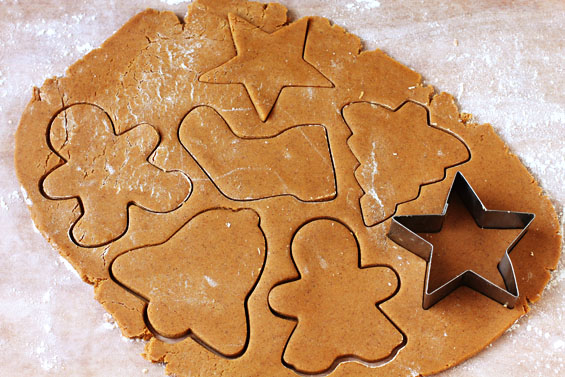 Формочками нарезать фигурки и убрать лишнее тесто.
